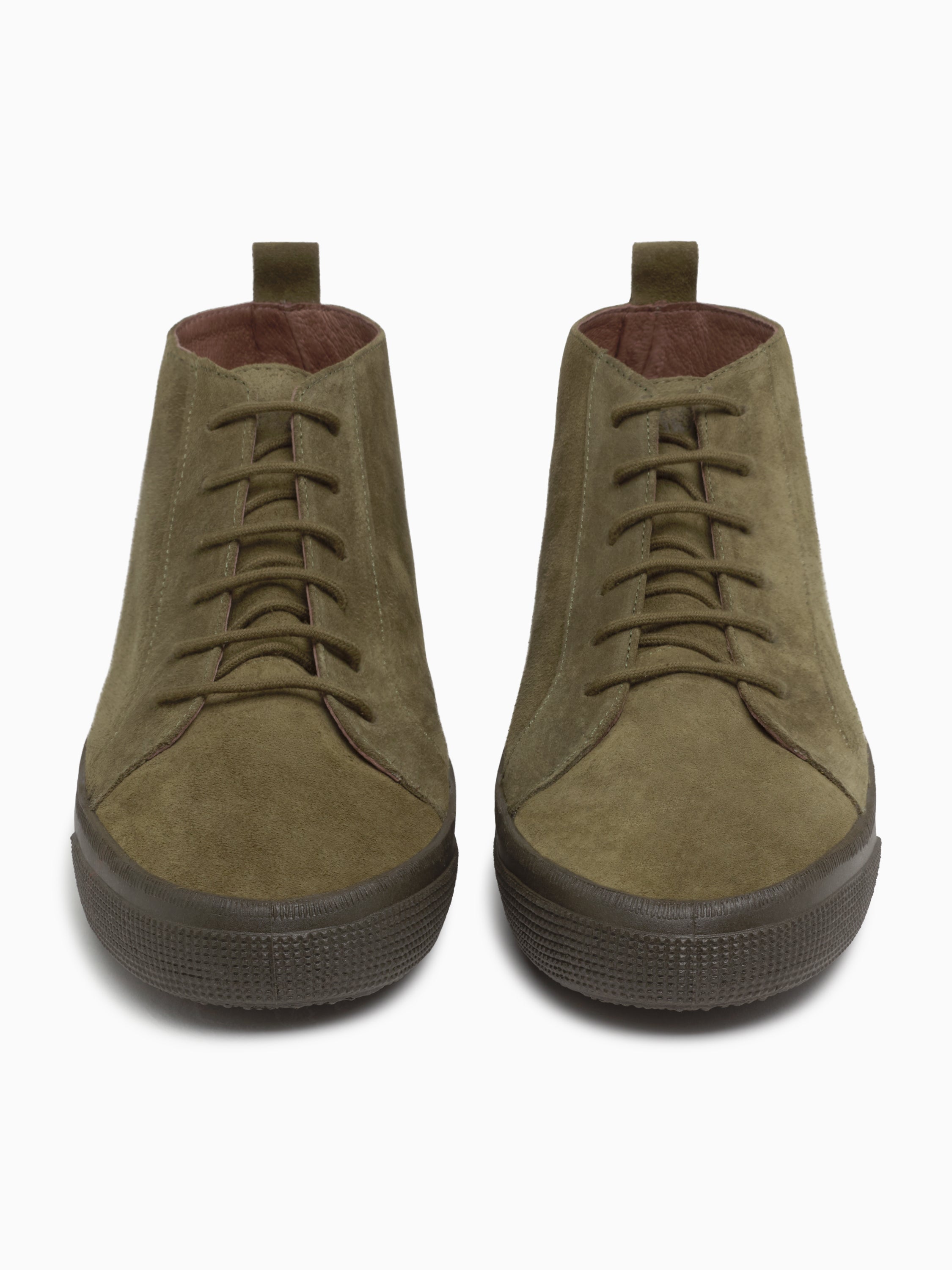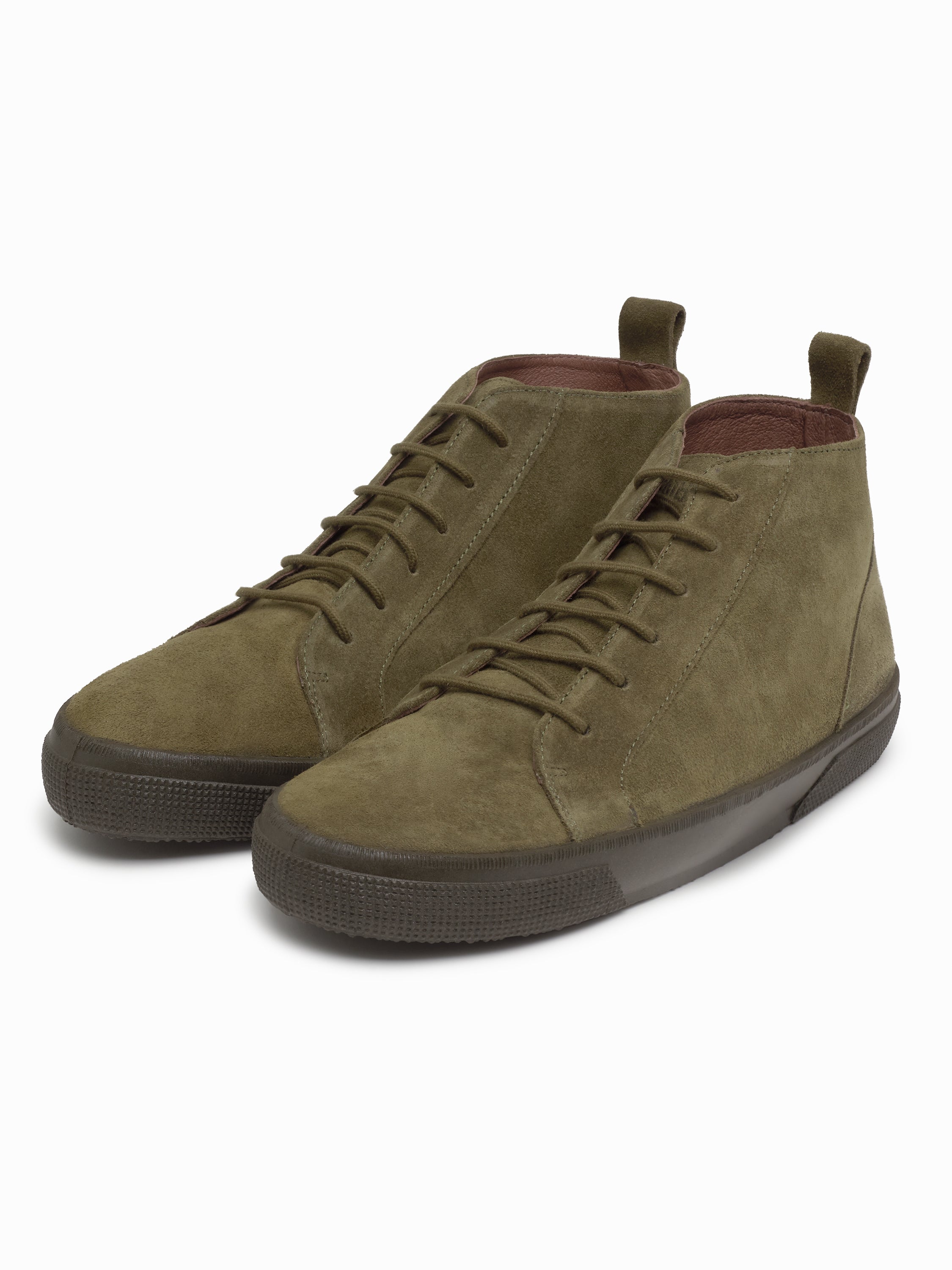 - Zapatilla alta de serraje en color verde con suela inyectada para mayor flexibilidad y acabado con cosido para una durabilidad superior